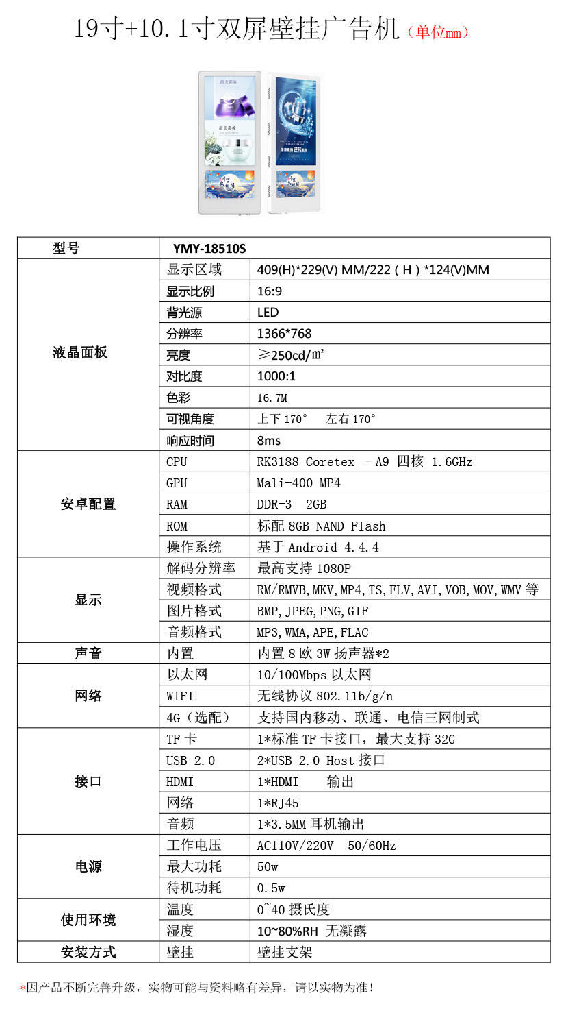 19寸雙屏壁掛廣告機(jī)